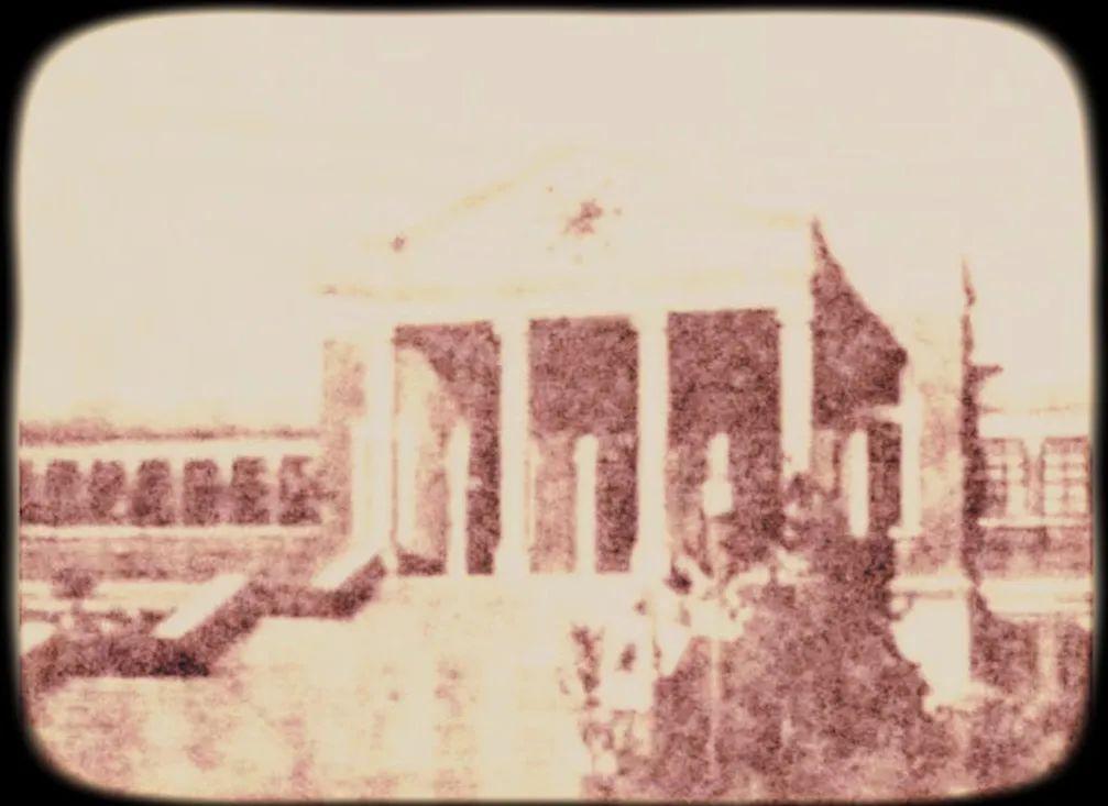 一只汉白玉狮子的老照片。当年由张学良出资,从北平运回一对汉白玉狮子,放在校园的中庸楼前。解放后搬到和平区新华广场一日本式小楼前摆放过,这是冯庸大学唯一的遗物。