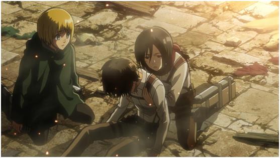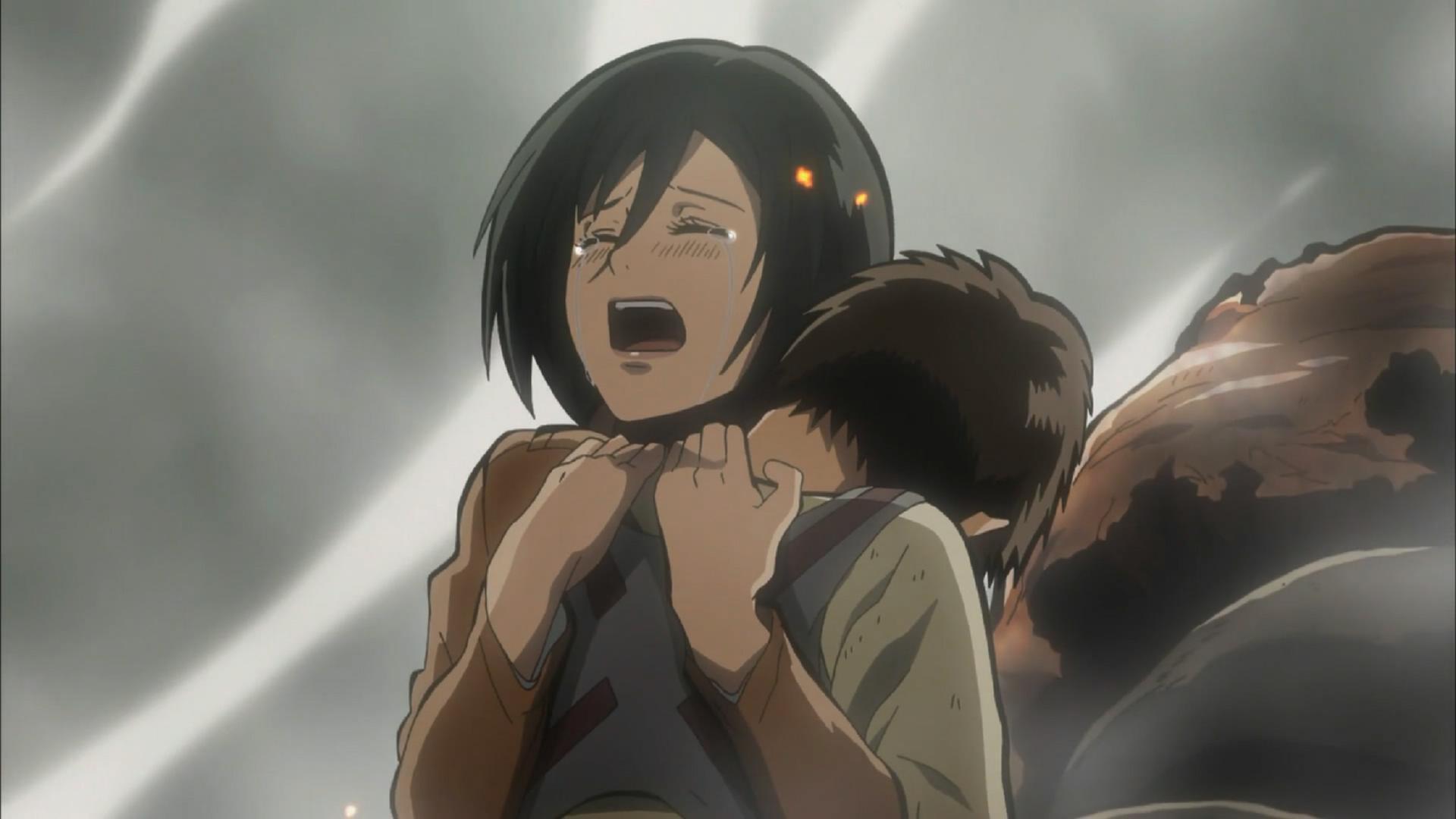 痛哭的三笠:特斯特区夺取作战成功后,早已筋疲力尽的艾伦就这样被三笠拥抱着。看的阿峰心碎,战后的情绪在这一刻爆发,为心爱的人痛哭……!