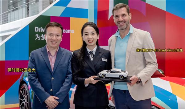 值得注意的是,这位女销售曾经还在保时捷中国北区举行的 4 月 Taycan 销售竞赛中获得冠军,被保时捷中国总裁及首席执行官柯时迈(Michael Kirsch)亲自颁奖,还送出了签名的荣誉车模。