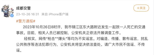 成都一起交通事故致 1 人死亡,网传“枪击”等均不实