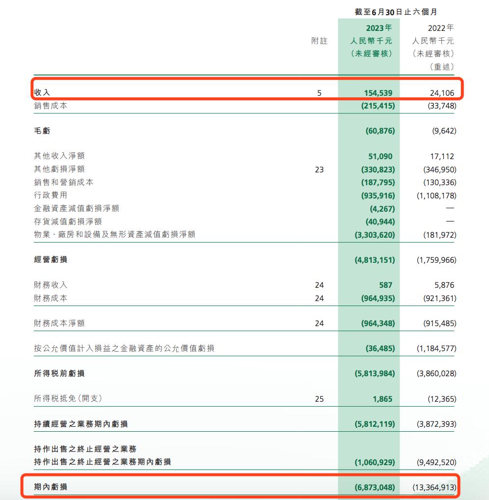 上半年营收增长逾 5 倍 亏损 68.73 亿