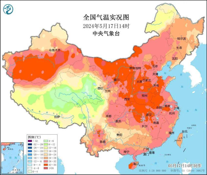 今天白天,北方就是一整个向着高温猛猛冲!截至 14 时,河南中西部、陕西中部、山西南部以及宁夏、内蒙古、河北、山东西部等地都出现了 35 ℃以上的高温天气。先来一张图感受一下这烫手的热度↓