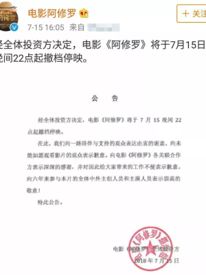 而《阿修罗》仅仅川上映3天,就宣布撤档榜停映。