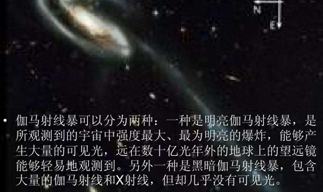 1997年12月14日发生一次伽马射线暴,它距离地球远达120亿光年,所释放的能量比超新星爆发还要大几百倍,在50秒内所释放出伽马射线能量就相当于整个银河系200年的总辐射能量。这次伽马射线暴持续时间在一两秒内,其亮度与除它以外的整个宇宙一样明亮。