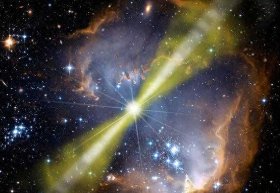 科学家认为伽玛射线暴的成因,可能因为两个致密天体如中子星或黑洞的合并产生的,也有人认为它是在大质量恒星演化为黑洞的过程中产生的,它虽然能量巨大,时间长短不一。