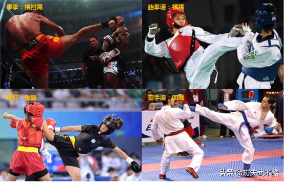 空手道的回蹴也是在屈抬腿的前提下进行的,屈抬腿的目的是保持身体的平衡,因此大腿有个停顿式的细节。但其支撑腿碾地时的摩擦借力比跆拳道的横踢要强,因此其击打力要强于跆拳道的横踢。
