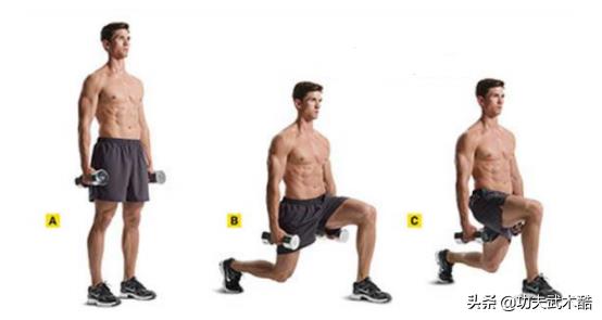 二、哑铃前跨步:打造强悍大腿内收肌群
