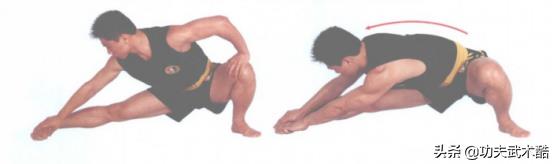一、柔韧拉伸-仆步压腿:拉开大腿内侧韧带和肌腱,使扫腿的弧线效果更明显,借助惯性打出更大力量的扫腿攻击。