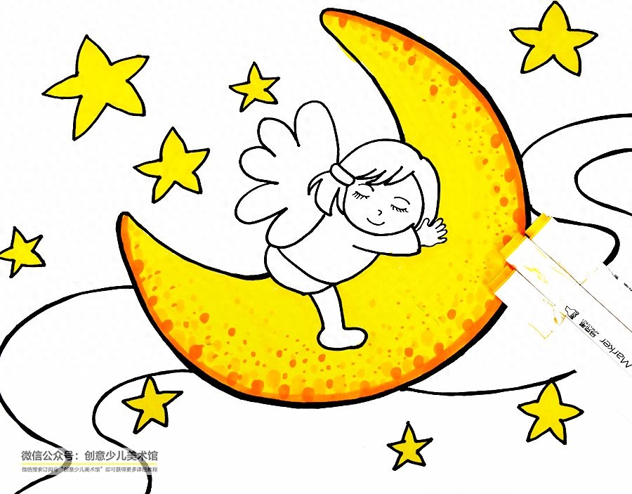 儿童画教程|弯弯的“摇篮”,甜甜的梦