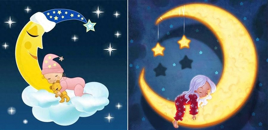 夜深了,夏天的夜空多么湛蓝呀!在深蓝的夜空中,明亮的星星一闪一闪地眨着眼,一轮弯弯的月亮正在哼着温柔的摇篮曲。在月亮的怀抱里,一个可爱的小女孩进入了甜甜的梦乡,真是一副梦幻又美好的画面!