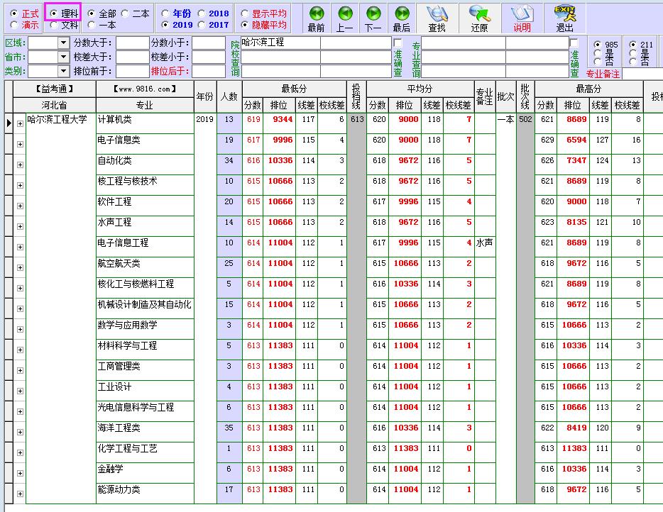 2025年河北省文科提档603分,省排3092名,相比19年前移198名,理科提档639分,省排10453名,相比19年前移552名。推荐的专业:1.军工特色:电子信息工程(水声),水声工程、能源动力类、核工程与核技术、核化工与核燃料工程2.非军工方向:计算机类、软件工程、电子信息类。