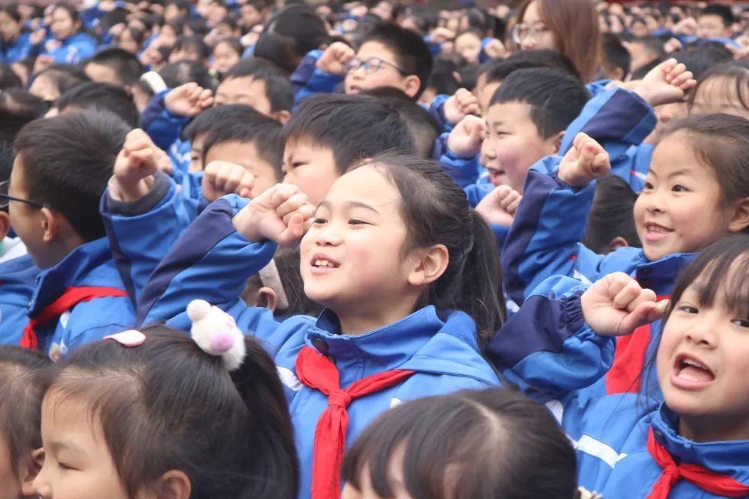 全体同学的脸上洋溢着灿烂的笑容,一起举起右手激情宣誓,高呼出铿锵有力的誓言,少年之声响彻校园,共同迈向新征程。