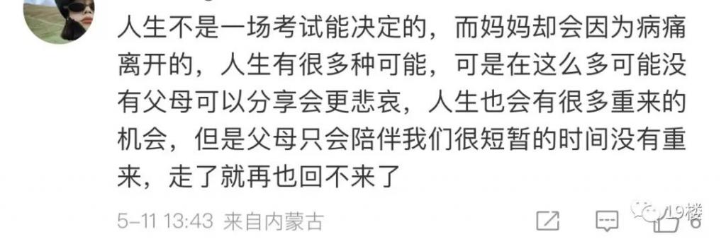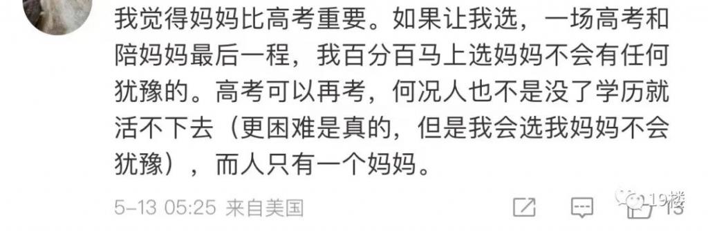 也有人认为高考只是人生中的一次考试,远没有家人重要。