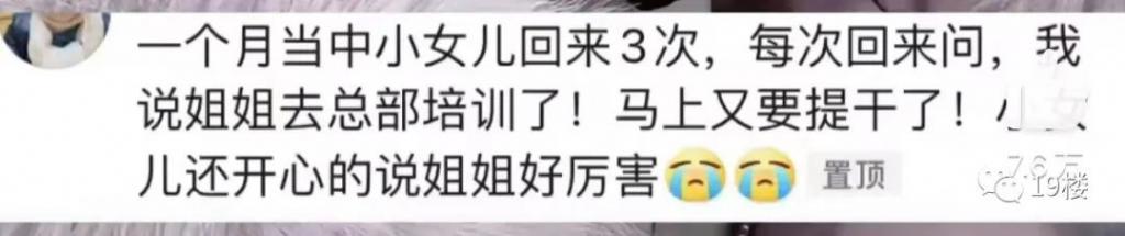最近,在一个疑似妈妈的账号中,评论区有消息被置顶显示:一个月当中小女儿回来了三次,每次都问姐姐,我说她去培训了,马上又要提干了!妹妹还开心地说,姐姐好厉害!