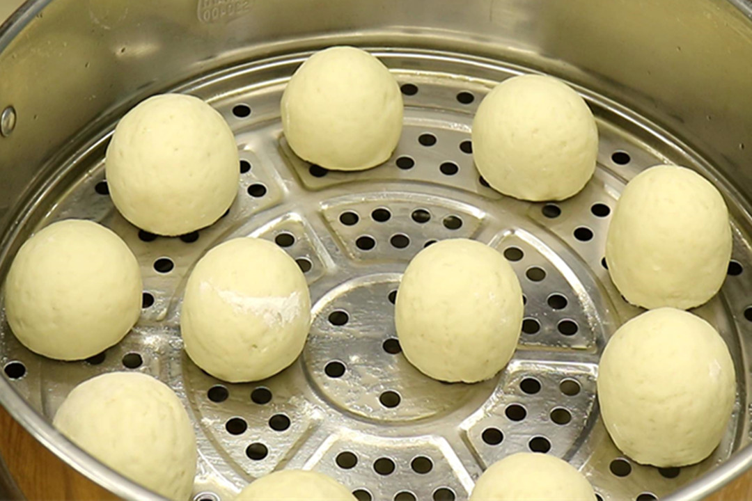 3.经过二次发酵的馍坯子,开水放入锅中,上气以后开始计时,蒸15分钟就可以了。
