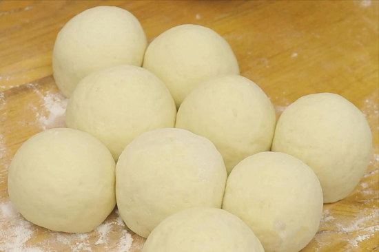 2.面发好以后反复盘,把空气排出去,把面揉瓷实、揉光滑,盘到劲了馍才筋道好吃、撕开一层一层的。面揉好以后下剂子,把剂子揉圆堆放在一起,省的走形,然后用馏布子盖住再发10分钟,蒸出来才暄软。