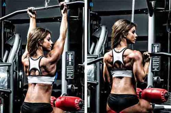 因此,我们建议在任何的背部训练动作中,你都应该降低重量到肘部能够完全伸展比如:做引体向上时,可以完全处于悬垂状态;在任何划船类动作中,手臂都应该可以完全向前伸直反过来,在动作前半程也就是上拉的时候,要能够拉到最远的位置以引体向上或下拉动作为例,下巴要超过横杆,横杆要几乎碰到上胸(最多差个2-5cm)