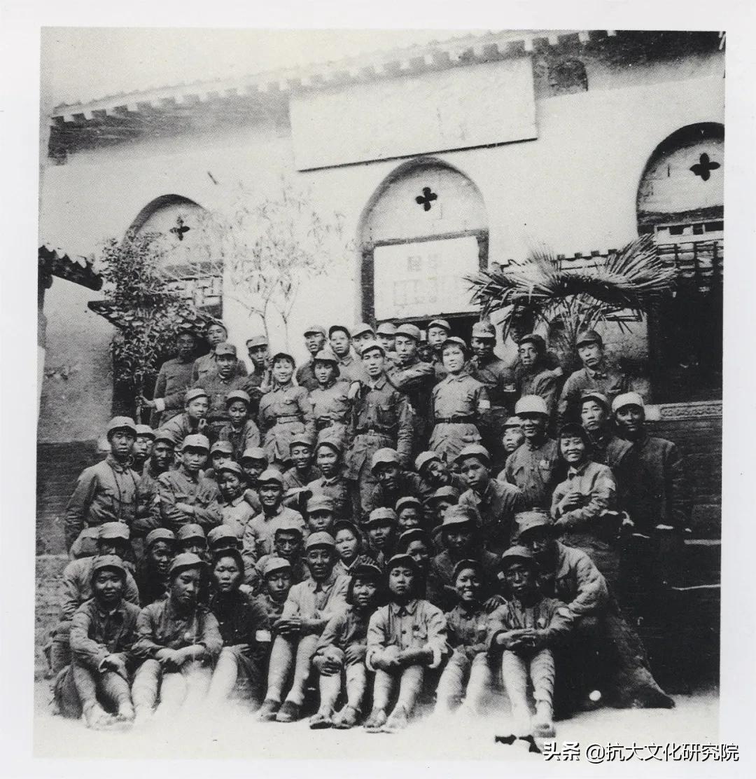 1940年6月1日,在抗大成立4周年纪念大会上,抗大副校长罗瑞卿调任八路军野战政治部主任。图为罗瑞卿(一排左五)赴任前,在武乡县牛家岭与抗大文工团合影。