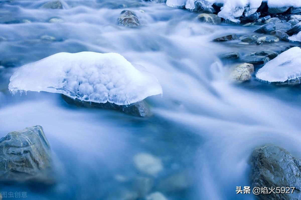 而在河水奔腾的江河,却很难结冰。这是因为水在结晶过程中需要水分子在凝结核周围有序地聚集,才能结晶,而流动的水,比较难有序地聚集在一起。