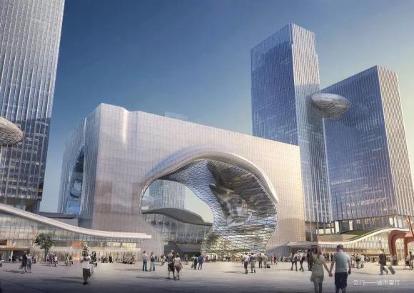 杭州西站效果图,旁边有几幢高楼大厦被戏称为tp-link西