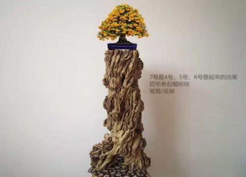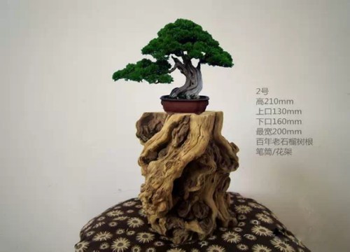 石榴木生长缓慢,久则中空,难成大材。百年古石榴木,自然风干老料,古朴苍劲,老味十足!经过精细打磨抛光,无油无蜡,原木质感,原生态绿色环保。是不可多得的文房佳品! 也可做花托、花架,或高档有品位的装饰品。根雕作品每见都是独一无二的,不存在赝品。天然的根,修饰越少,根型越奇特,收藏价值越高。