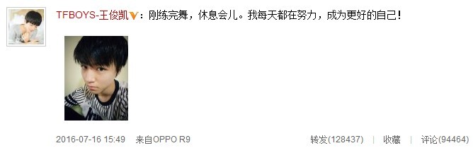 今天下午,TFboys队长 王俊凯在微博晒出一张自拍