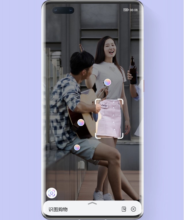 6、全新识图购物,心动服饰轻松拿下。遇见心动穿搭图,双指长按屏幕,可识别整套服饰,并一步生成同款购物卡片。切换单品气泡,同款配饰一起拿下。