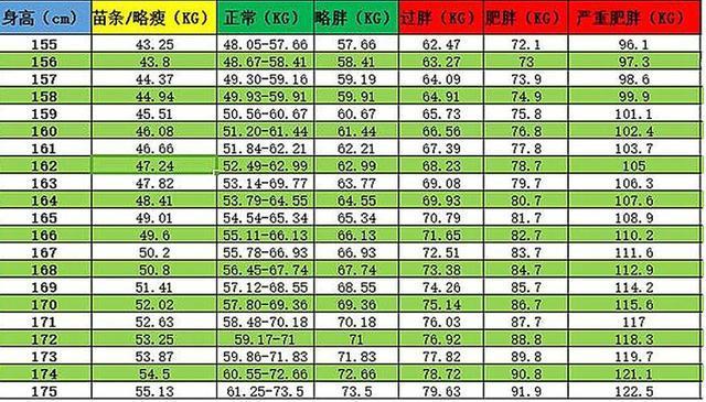女生155cm-175cm体重标准表,对照看一下,或许你不并不胖