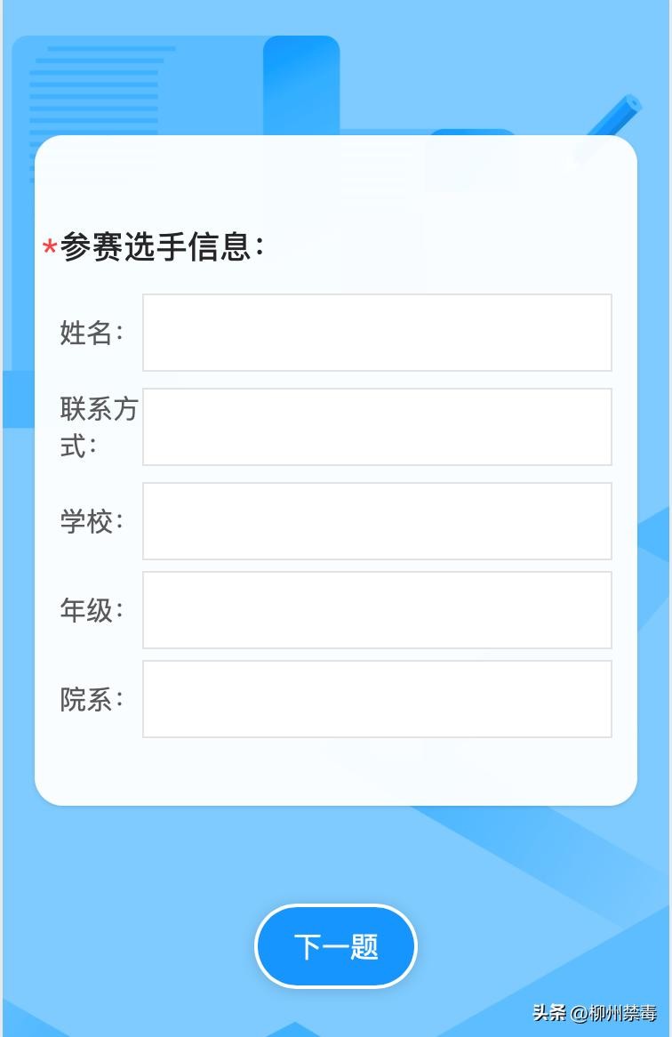 注册报名:根据注册要求填写好姓名、手机号码,填写所在的学校、年级、院系,即可开始参加答题活动。