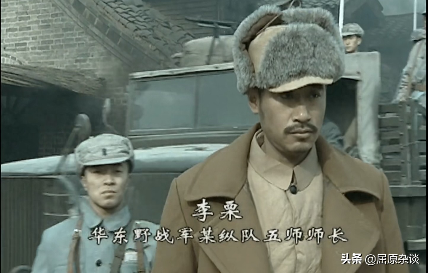 其二,五师师长出场时,字幕打出某纵队五师师长——李栗。