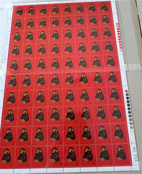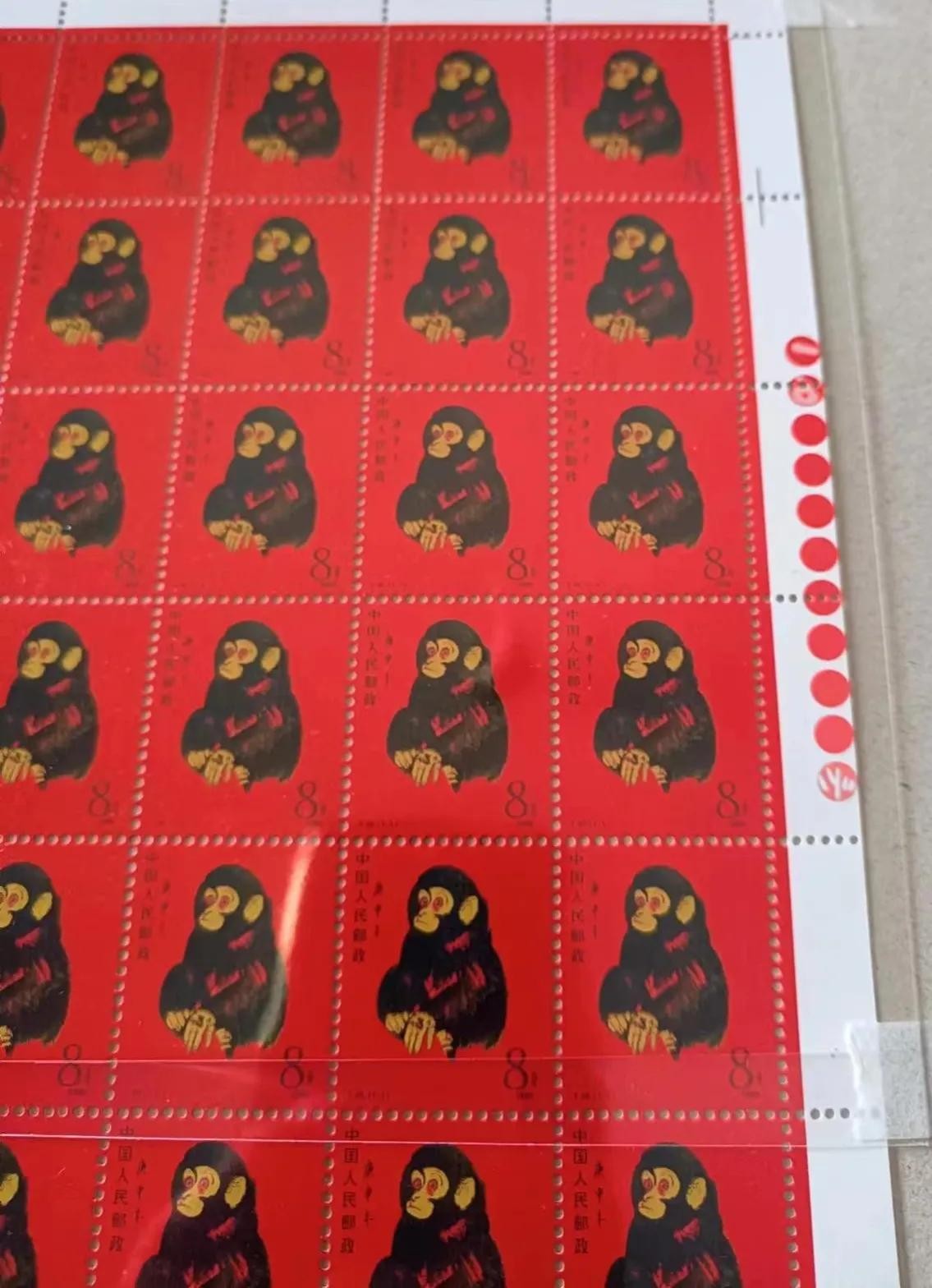 众所周知,80版猴票的图案设计出自著名画家黄永玉先生的手笔,猴子栩栩如生,邮票的底色为大红色,非常喜庆。集邮爱好者都知道,1980年的猴票,整版的市场价早已过了150万元大关!前不久,黄永玉先生溘然长逝,80版猴票闻声上涨。全品的整版猴票,大有冲破200万元大关的趋势。