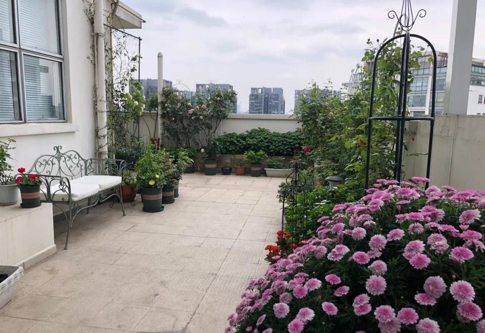 带露台的顶楼,不仅能够把楼顶打造成空中花园,甚至还可以建一个阳光房,而且受到物业、城管当成“违建”干涉的风险,也没有一楼那么大。