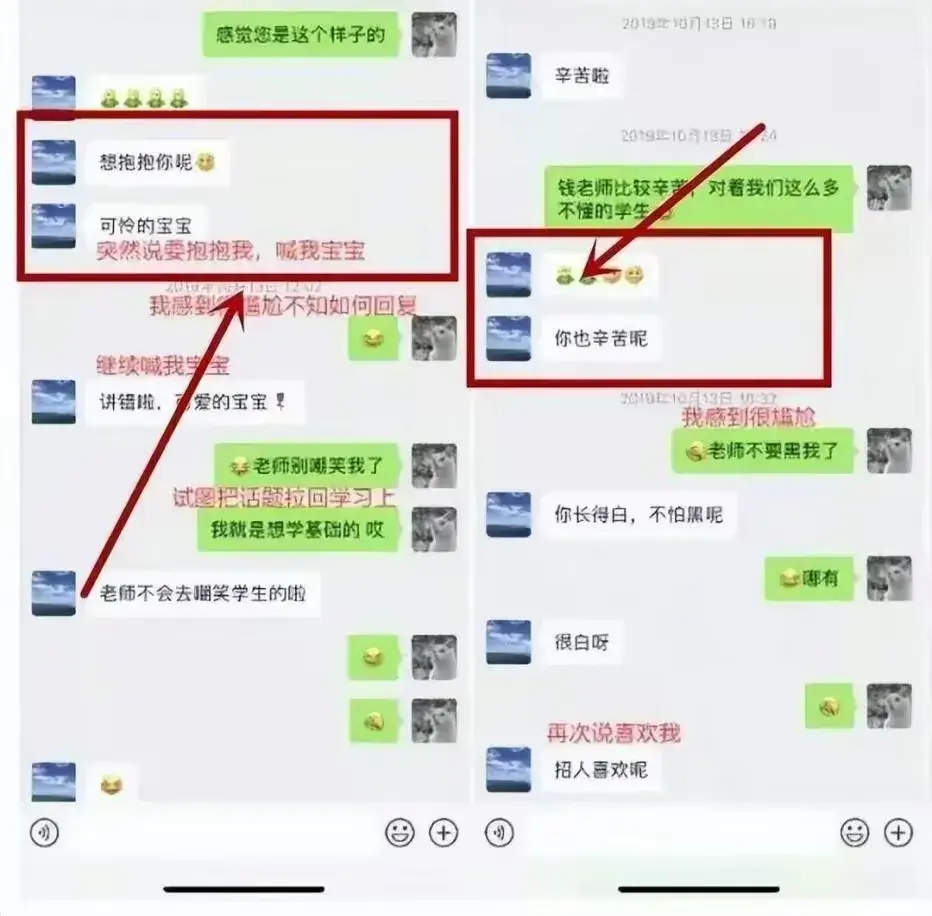 除了这次事件,还有许多看似正常却充满暧昧信息的对话,如“宝贝”、“亲亲”,让许多女学生倍感压抑。这些行为都是他利用权力施展的阴暗手段。公开的聊天记录和录音成为揭露真相的关键。