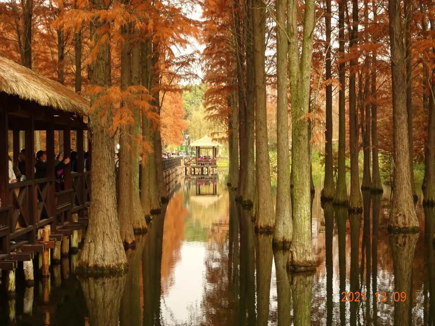 水上森林的水杉林一到深秋初冬树叶逐渐变红,越来越惊艳,游客们趋之若鹜,纷至沓来,进入旺季每逢周末往往人满为患。