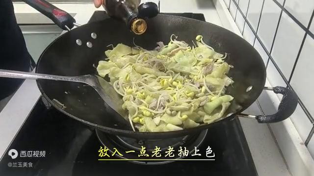5. 然后放入白不老豆角,继续开大火翻炒。