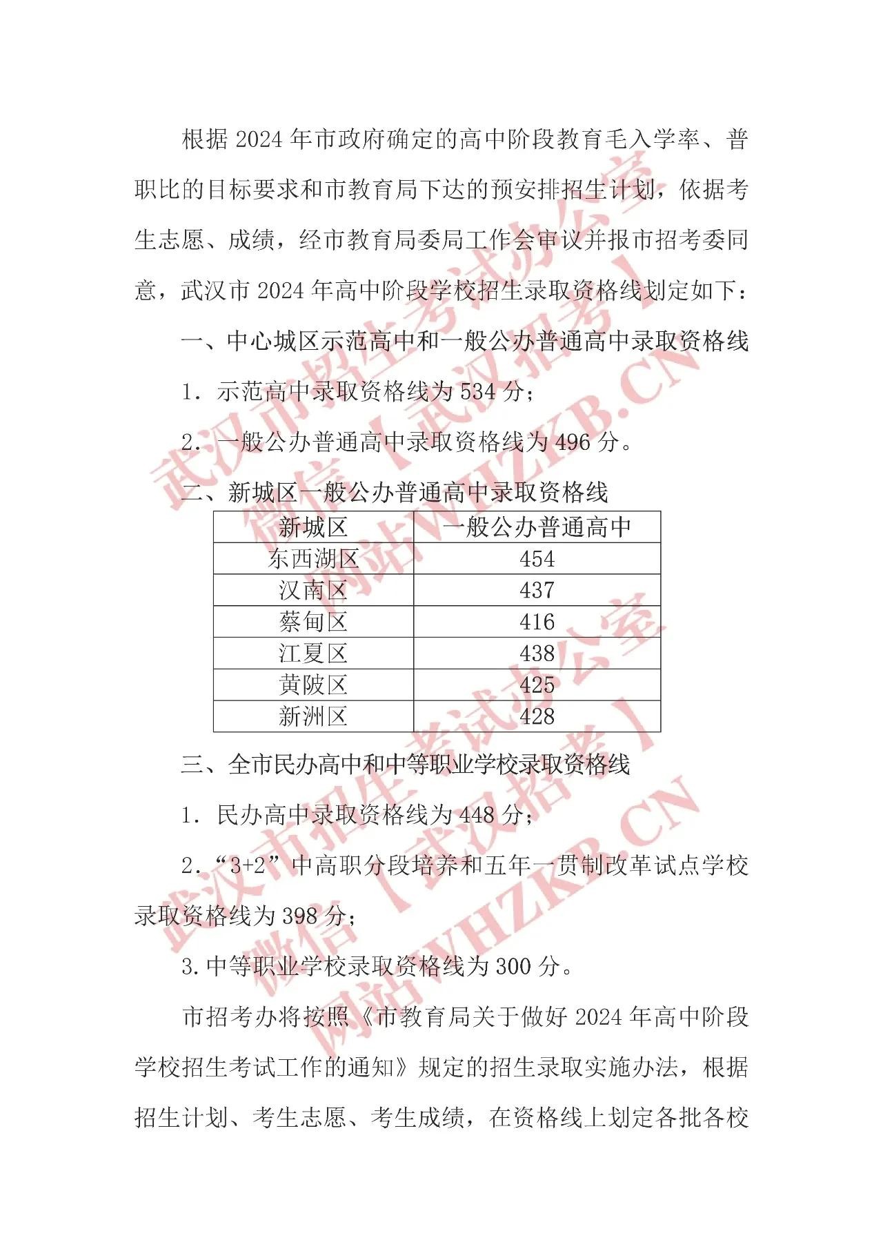 2024武汉中考分数线出来了!示范高中534分,普高496分