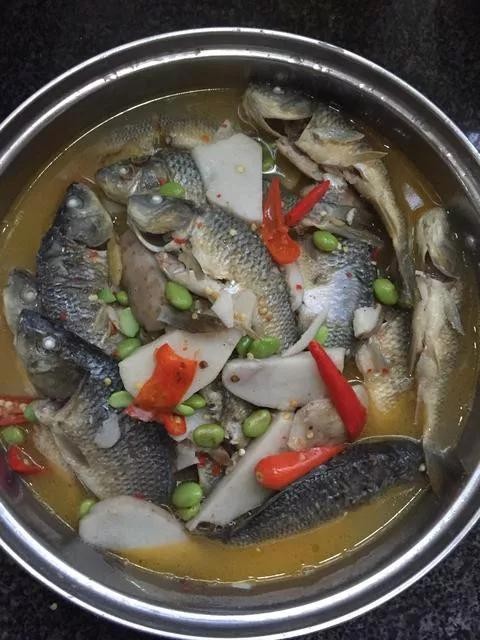 也可以俺制,把稻花鱼去内脏,抺上辣椒粉、盐、花椒,放入木桶,用石块压住,等鱼发酵,可煎、可蒸,是一道招待客人的佳肴。