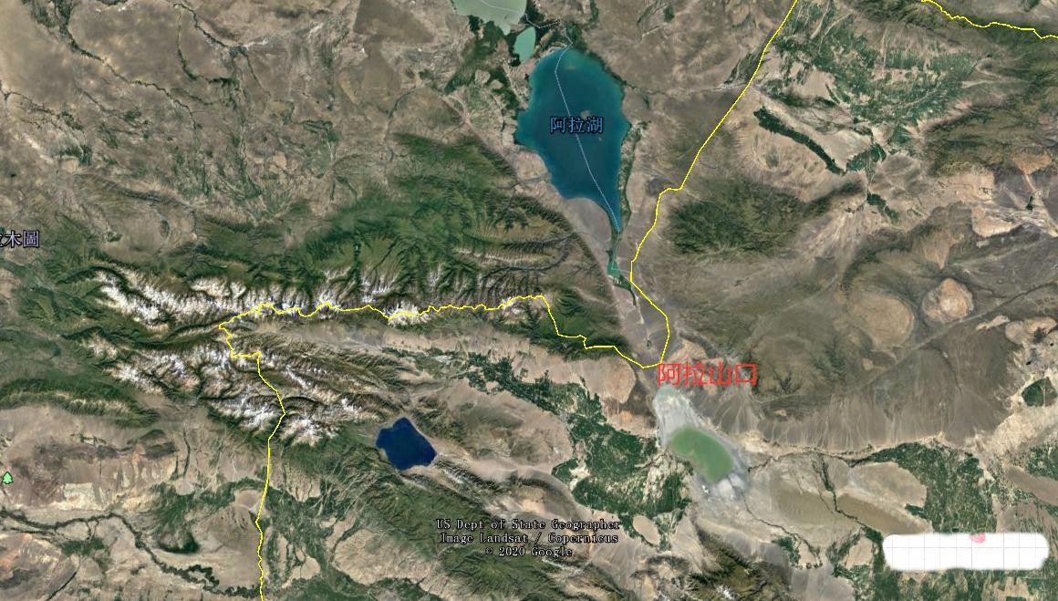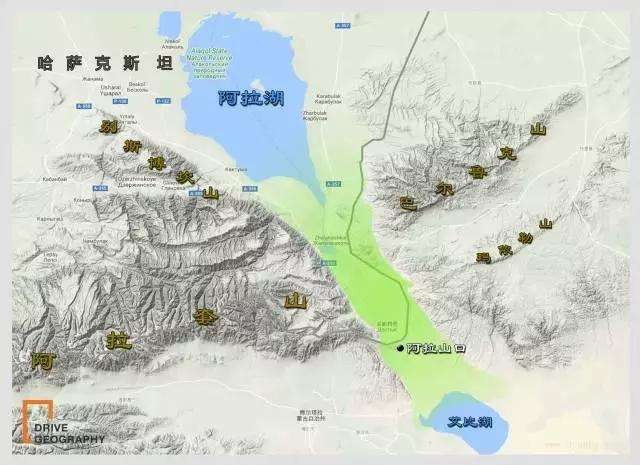 阿拉山口,古突厥语为"各种花色"之意。地处阿拉套山、巴尔鲁克山之间,距博乐市东北73公里,山口通道北临哈萨克斯坦共和国阿拉库里湖,南接艾比湖。海拔190—340米,是著名的风口。距相邻的哈萨克斯坦多斯特克口岸12千米。