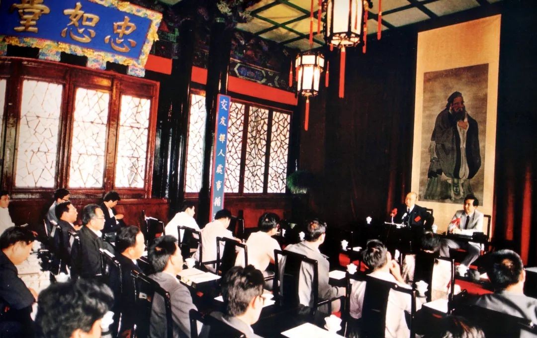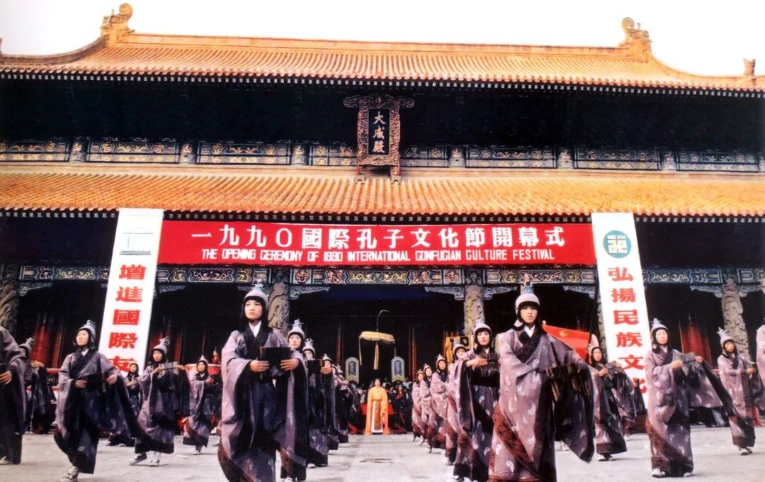 1990年9月26日,国际孔子文化节开幕式在曲阜孔庙大成殿前举行。该年孔子文化节主题活动是失传《箫韶乐舞》再现,孔子学术会堂开讲。
