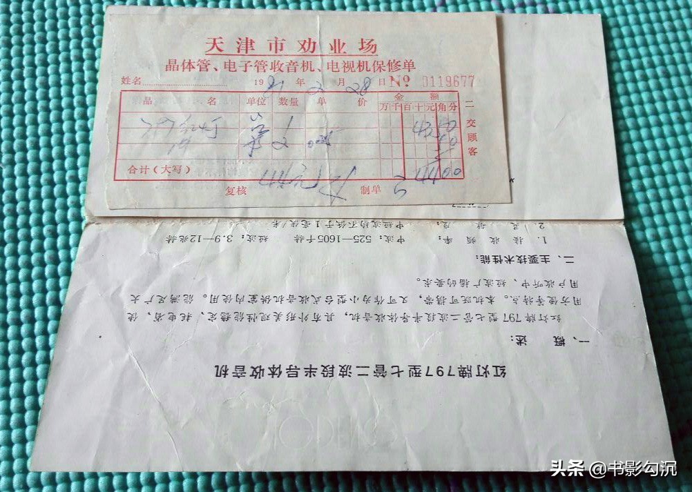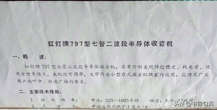 一张老纸头,红灯牌797型半导体管收音机说明书,内附一张保修发票44元
