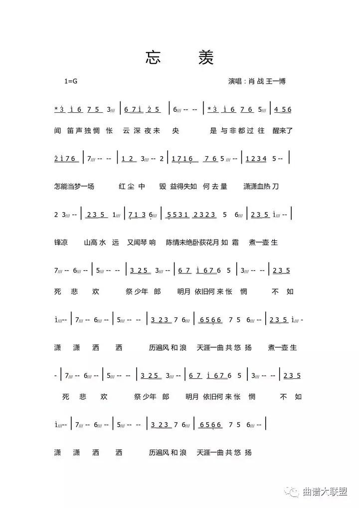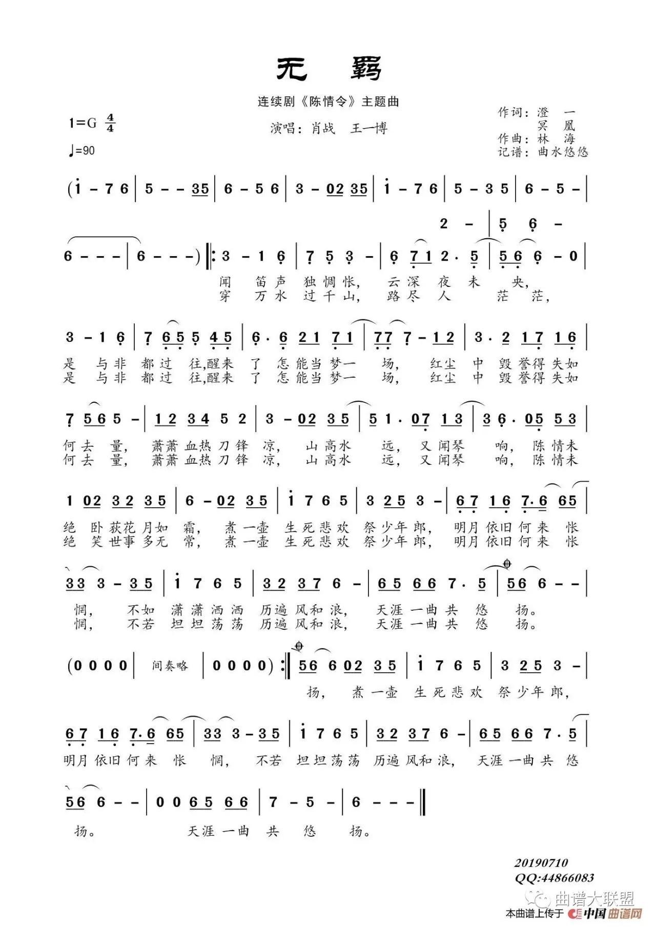 陈情令《无羁》简谱