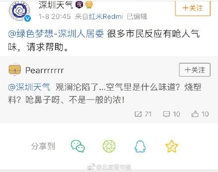 深圳多地弥漫刺鼻气味 环保部门正在调查