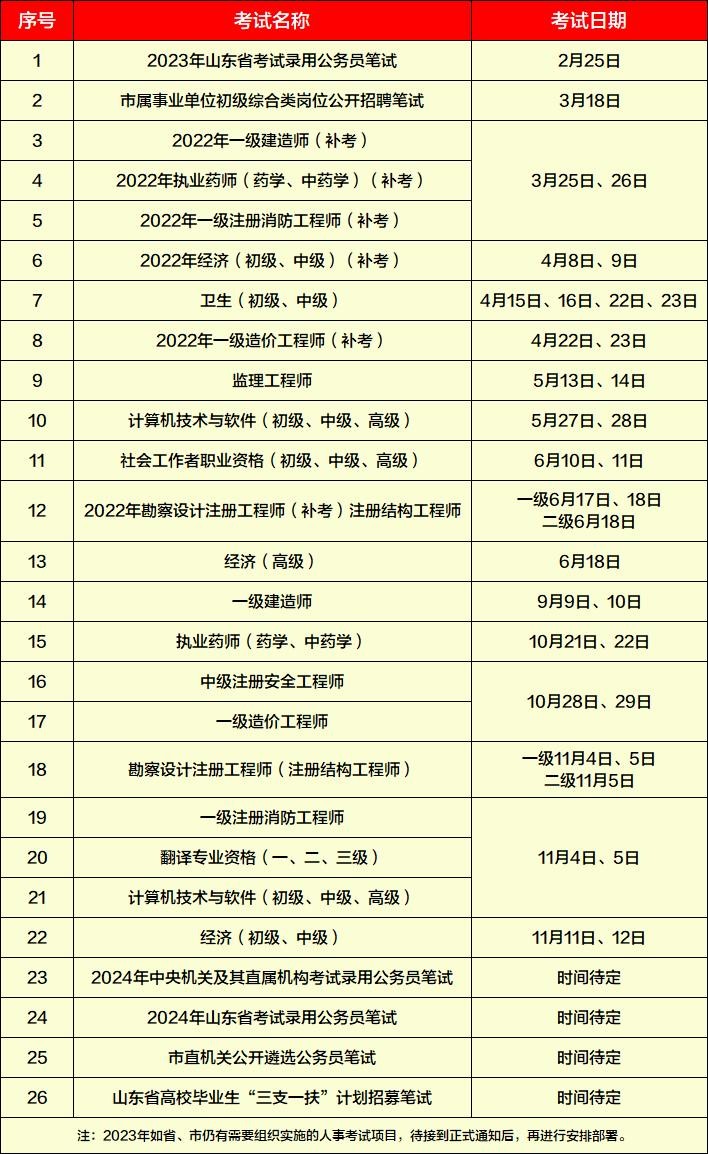 考公、考编、考证……2023济宁全年人事考试安排都在这儿