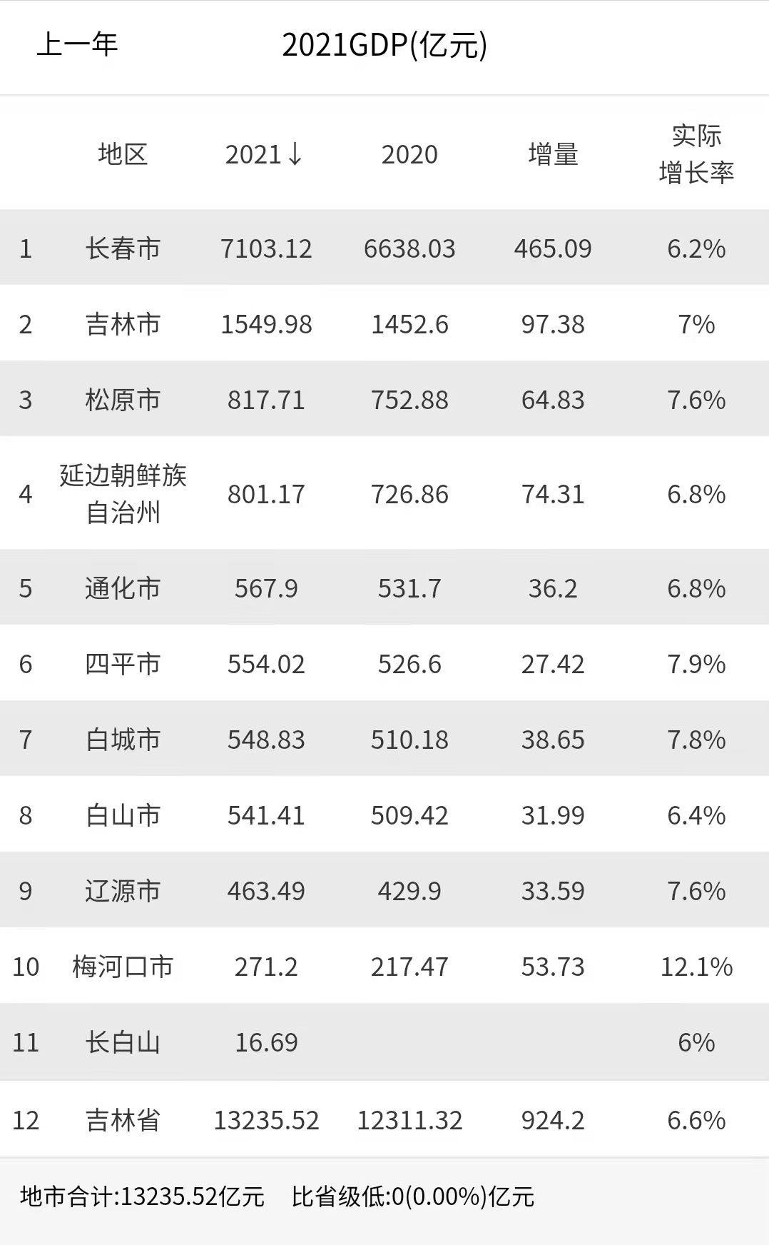 这里面也得提一下,统计方面,把梅河口单独计算了,如果算到通化下面,通化的GDP应该是吉林省第三的,不过现在梅河口以及梅河新区都是厅级高配的,也相当于是吉林省的雄安新区了,所以单独计算更加科学。