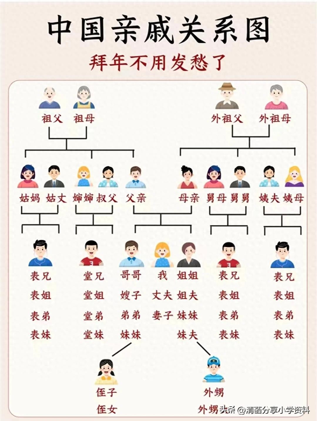 拜年不用发愁了,中国亲戚最全关系图总结好啦❗❗