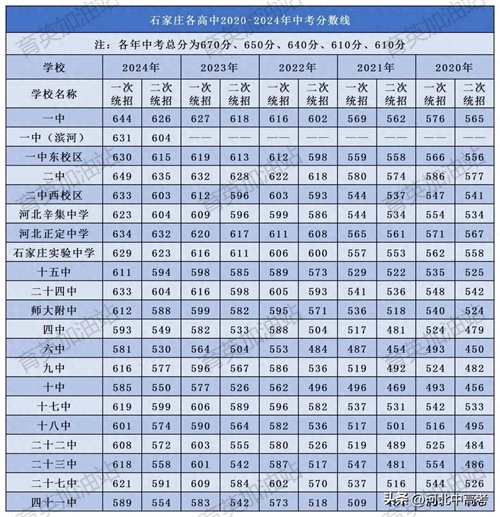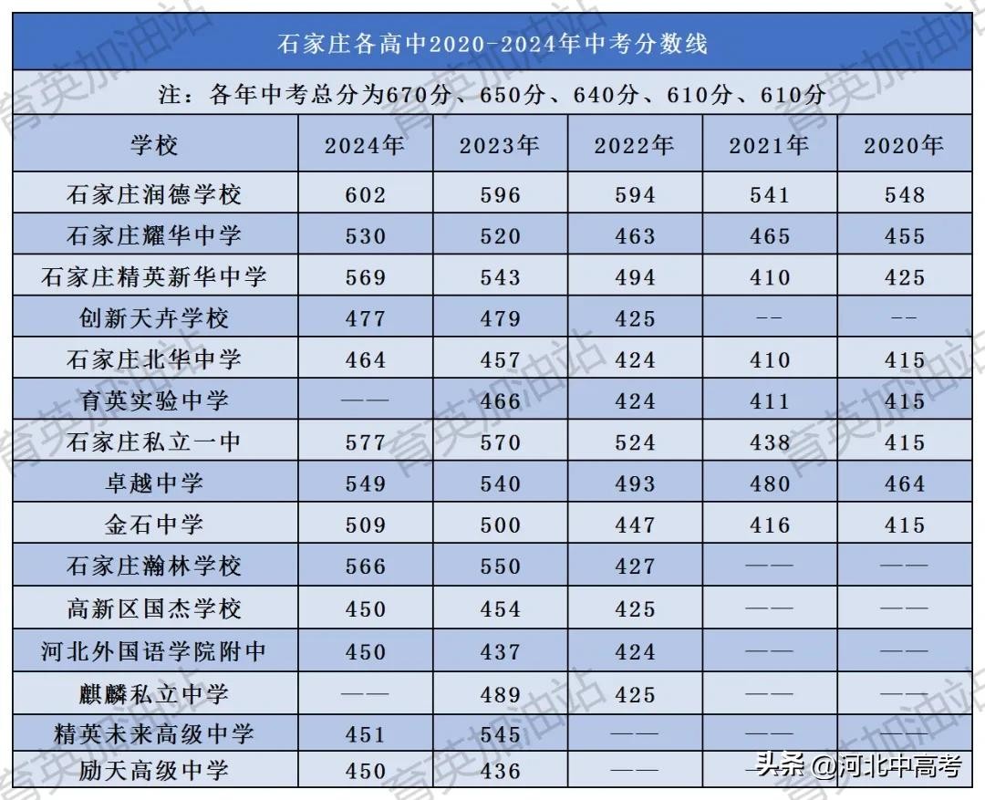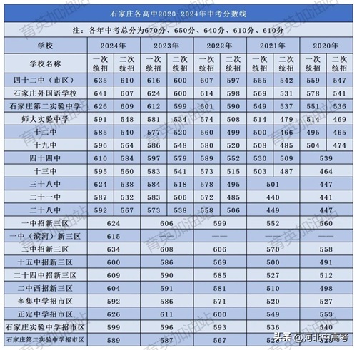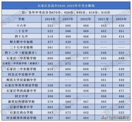 2020-2024年石家庄各高中分数线汇总