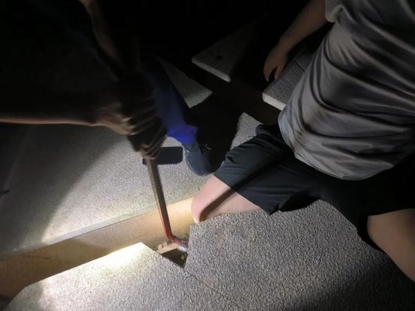 男子走夜路不慎脚卡道路缝隙 消防紧急救援