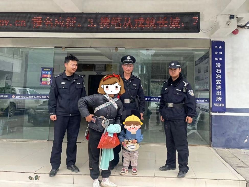 盘州市公安局滑石派出所赶集日萌娃走失 巡逻民警及时相助