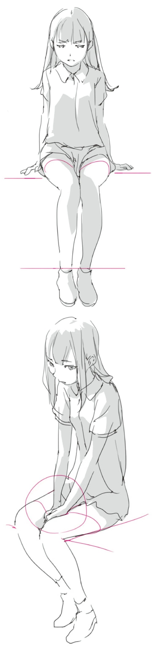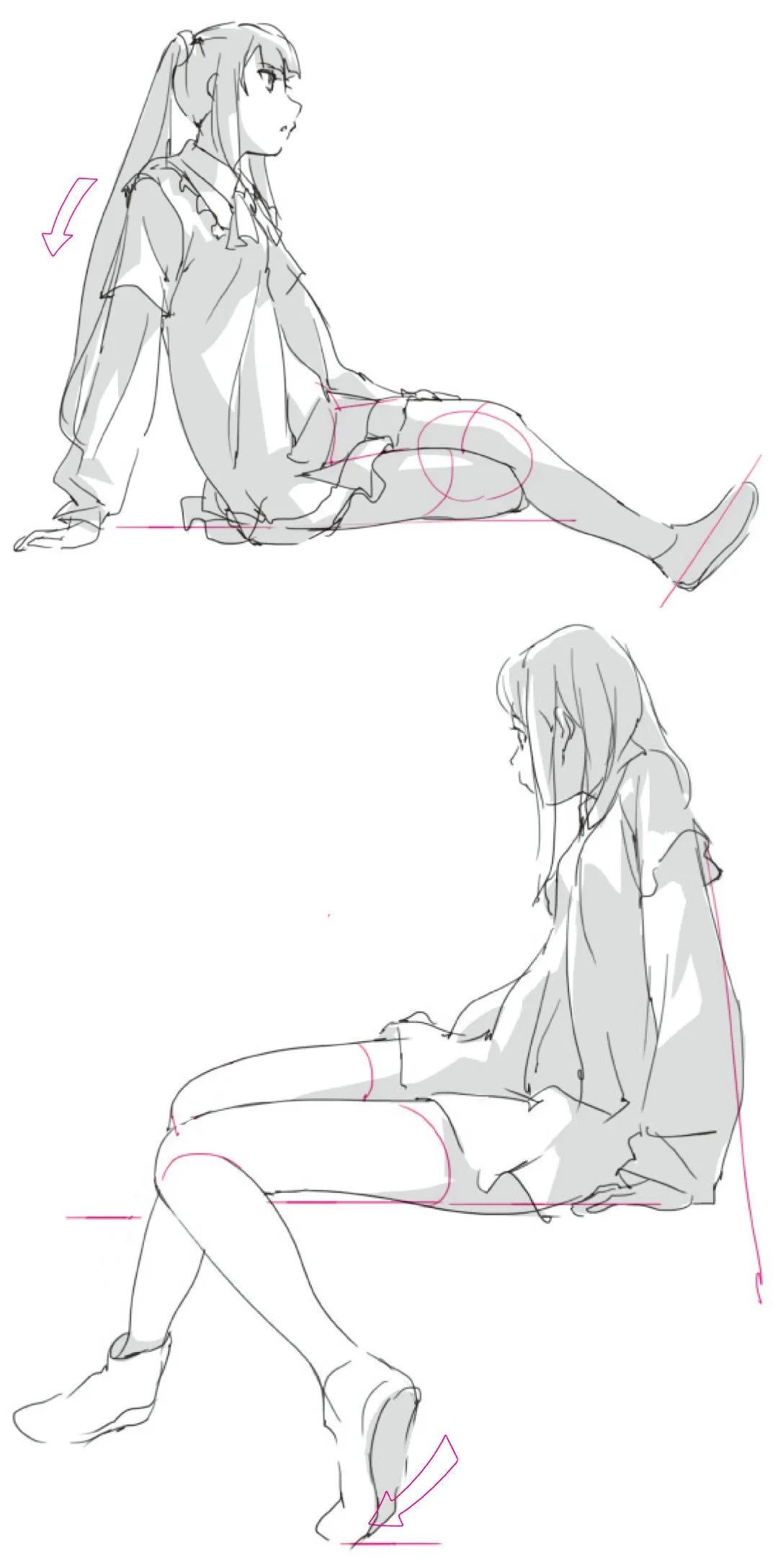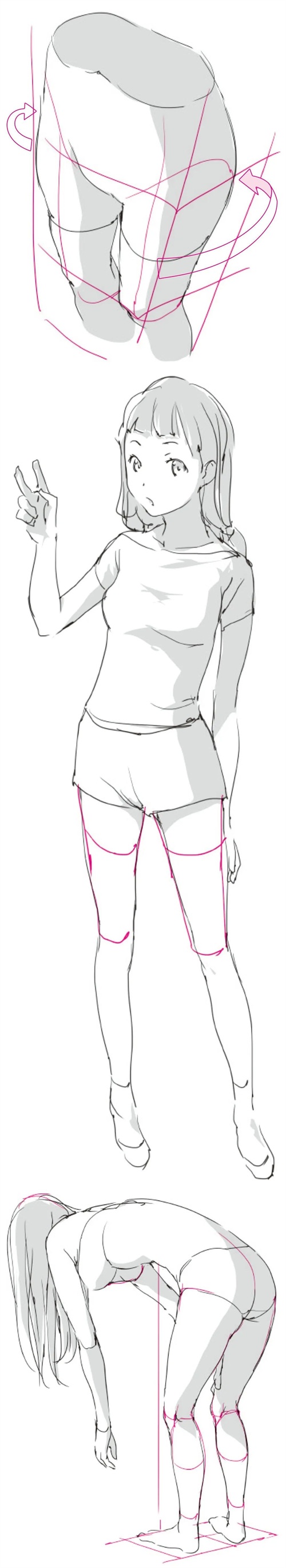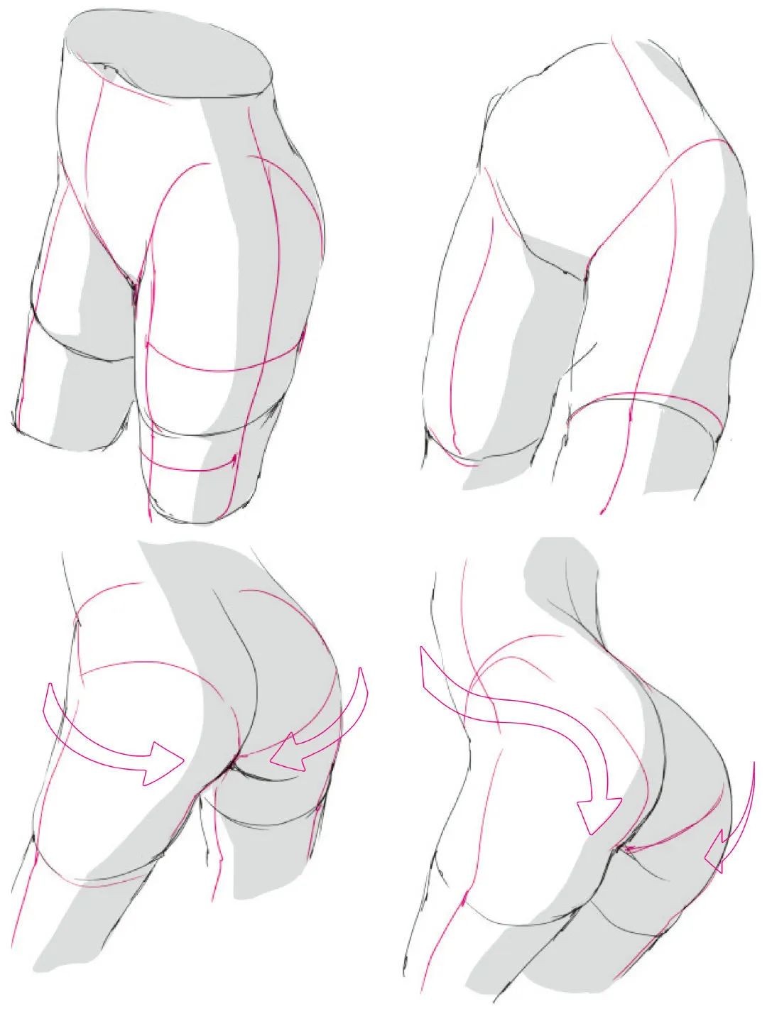 「绘画参考」女性人体动态姿势的立体感和阴影的绘制(人体参考)