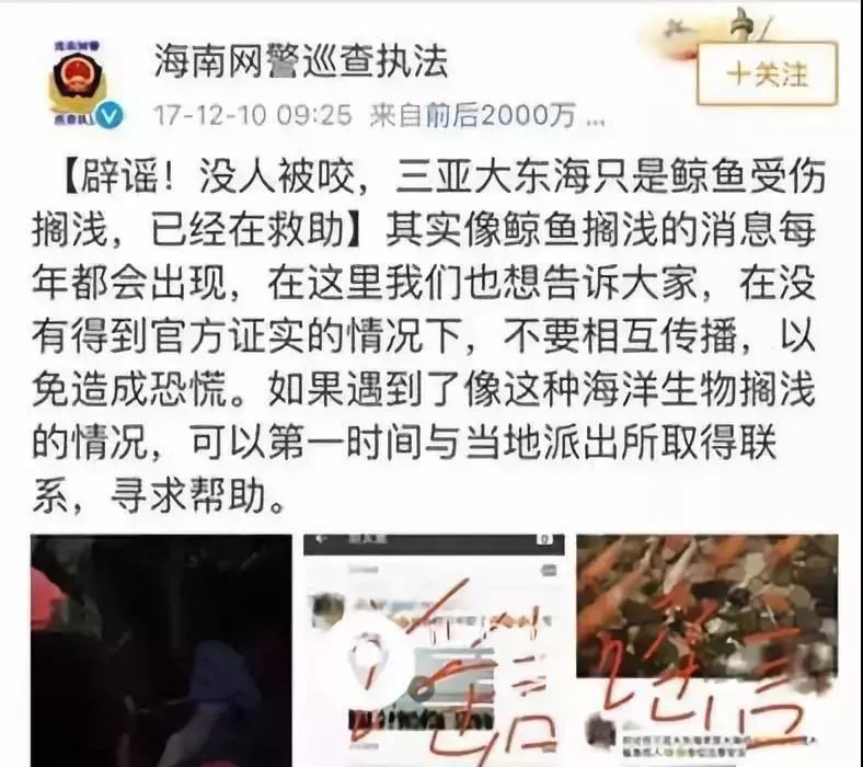 当年12月10日@海南网警巡查执法就已辟谣没有出现任何游客被咬受伤的情况